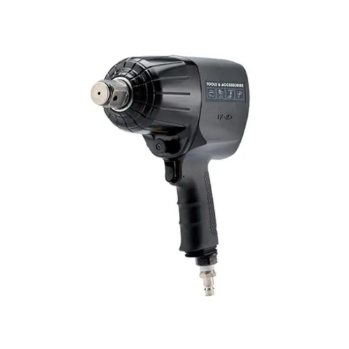| Karakteristike | Ovaj model pneumatskog pištolja ima lagano kompozitno kućište, sistem dvostrukih čekića visokih performansi i poseduje gumeni držač. Pneumatski pištolj je bez manometra. Masa : 3.7 kg Dimenzije : 214 x 84 x 266 mm Prihvat : 1" Zatezna sila : 1900 Nm Radni pritisak : 6,3 bara Potrošnja vazduha : 9.1 l/sec |