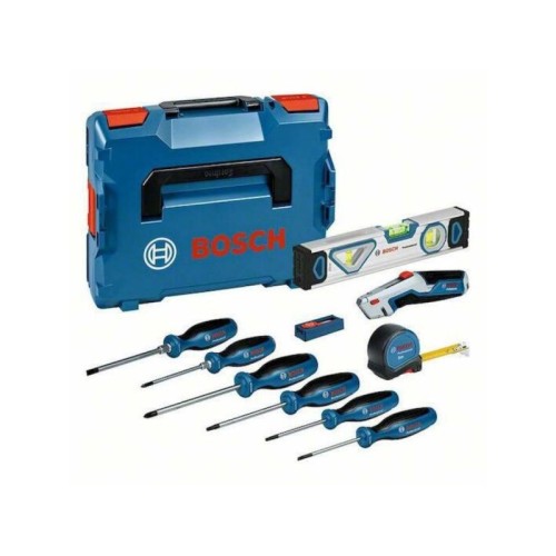 | Karakteristike | Odvijači SL (3.5 x 75 mm) / SL (6.5 x 125 mm) / TX (15 x 75 mm) / TX (20 x 100 mm) / PH (1 x 100 mm) / PZ (2 x 125 mm) Materijali kvalitetan S2 hrom-vanadijum čelik i aluminijumski dodaci za robusnost Težina (sa koferom) 4,6 kg Obim isporuke: 6x odvijača (SL, TX, PH, PZ tipovi) 1x merna traka (5 m) 1x magnetna libela (25 cm) 1x sklopivi nožić 10x rezervnih sečiva 1x Bosch L‑BOXX 102 kofer sa umetnutim pregradama |