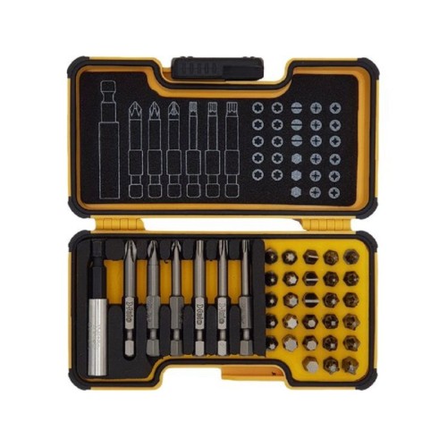 | Karakteristike | Kompozicija seta: Bitovi C6,3 x 25 mm, E6,3 x 50 mm Bitovi 25 mm SL: 4,0 / 5,5 / 6,5 Bitovi 25 mm PZ: 2 x PZ1 / 3 x PZ2 / PZ3 Bitovi 25 mm PH: PH0 / 2 x PH1 / 2 x PH2 / PH3 Bitovi 25 mm HEX: 3mm / 4mm / 5mm Bitovi 25 mm TORX: TX5 / TX6 / TX7 / TX8 / TX10 / TX15 / TX20 / TX25 / TX30 / TX40 Bitovi 50 mm PZ: PZ1 / PZ2 Bitovi 50 mm TORX: TX20 / TX25 / TX30 Bitovi 50 mm PH: PH2 Držač bitova E6,3 x 58 mm Kućište 135 x 75 x 37 mm |