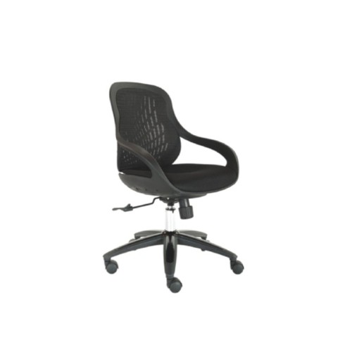 | Karakteristike | Tip: Kancelarijska stolica Karakteristike: Ergonomski dizajn Crna plastična školjka Naslon mreža – sedište meš Tilt mehanizam Plastična baza sa točkićima Nosivost: 120 kg Dimenzije: Visina: 85-93cm Visina sedišta: 46-54cm Širina sedišta: 47cm Dubina sedišta: 44cm |