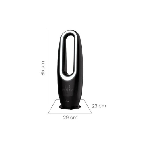 | Karakteristike | Boja: Crna Instalacija: Podna Tip napajanja: AC Potrošnja: 70W Dimenzije: Širina 29 cm, dubina 23 cm, visina 85 cm Neto težina: 4,3 kg LED noćno svetlo: Dodatna funkcija za noćnu upotrebu ili ambijentalno osvetljenje. 4 brzine: Omogućava podešavanje intenziteta protoka vazduha prema potrebama. 10-časovni tajmer: Automatsko isključivanje radi uštede energije. Daljinski upravljač Kontrola na dodir |