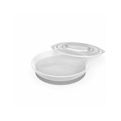 - Tanjir Twistshake pričvršćuje se na njega jednostavnim klikom i okretanjem udesno, čvrsto držeći tanjir na stolu.