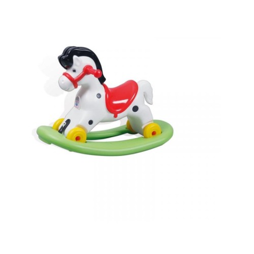 Skidanjem podloge za klackanje konjić postaje guralica na točkovima. Uzrast: 3+.