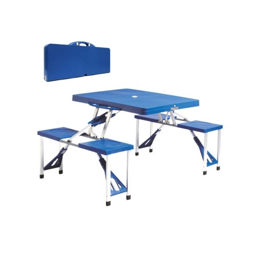 | Karakteristike | Praktičan i funkcionalan kamperski sto idealan za izlete, kampovanja, piknike i putovanja sa integrisanim klupama. Zahvaljujući pametnom dizajnu, sto se lako sklapa u oblik kofera sa ručkom, što ga čini jednostavnim za nošenje i odlaganje. Komplet uključuje sto i 2 integrisane klupe za ukupno 4 mesta za sedenje Sklapa se u kompaktan kofer sa ručkom Laka, ali izuzetno čvrsta aluminijumska konstrukcija Otvor na sredini stola za postavljanje suncobrana Otporan na vremenske uslove i jednostavan za čišćenje Idealan za kampovanje, vrt, plažu, piknike i dvorište |