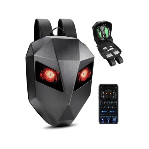 | Karakteristike | Praktičan i moderan: LED ranac sa animiranim očima može držati različite vrste motociklističkih kaciga. Ima 3D vodootpornu tvrdu školjku sa skrivenim vodootpornim rajsferšlusima. Unutrašnjost: poliester. Kapacitet: 30 litara. Unutrašnji odeljci su odvojeni i dizajnirani za čuvanje laptopa, tableta, ključeva, novčanika, knjiga, mini iPada, mobilnih telefona, kišobrana, sportske opreme itd. Visokokvalitetni materijali i ergonomski dizajn: LED viteški ranac ima moderan oblik i ergonomski dizajn. Opremljen je sa 2 sigurnosne kopče za vožnju, podesivim širokim naramenicama sa reflektujućim trakama i mrežastim leđnim panelom koji pruža udobnost, prozračnost i stabilnost. Kako koristiti: Povežite ranac sa eksternim punjačem putem ugrađenog USB interfejsa (unutar ranca). (Proizvod ne uključuje Power Bank, iz bezbednosnih razloga prilikom transporta ne isporučujemo eksternu bateriju.) Preuzmite i otvorite aplikaciju, povežite se putem Bluetooth-a i jednostavno podesite ranac. Bluetooth povezivanje, kontrola putem aplikacije: Skenirajte kod da biste preuzeli aplikaciju LOY EYES, povežite ranac sa pametnim telefonom putem Bluetooth-a i upravljajte njime kroz aplikaciju. Aplikacija je kompatibilna sa iOS i Android sistemima i može se besplatno preuzeti sa Google Play-a ili App Store-a. (Napomena: Bluetooth povezivanje se vrši klikom na Bluetooth ikonu unutar aplikacije; nemojte pokušavati da povežete ranac direktno putem Bluetooth podešavanja telefona, jer veza neće biti uspostavljena.) |