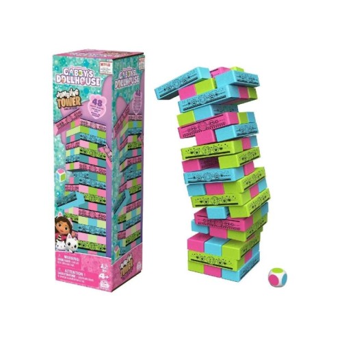 | Karakteristike | - Tip igre: Društvena igra balansiranja – slično Jenga konceptu, ali sličica i tematika iz Gabby’s Dollhouse.