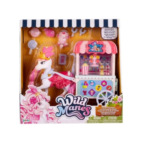 | Karakteristike | Upoznajte Wild Manes, sarene konjice jedinstvenog stila iz animirane serije koja prikazuje svet šarenih konjica, smeštenih u maštovito okruženje zvano Mane Street. Preslatke prijateljice govore o prijateljstvu i avanturama. Zabavni set za igru uključuje: kolica puna poslastica za zadovoljenje vaše želje za slatkišima, plus nekoliko karnevalskih nagrada. Komplet sadrzi preko 17 dodataka. Figura dolazi sa nekoliko tačaka artikulacije. Ovi setovi razvijaju dječju kreativnost i maštu. |