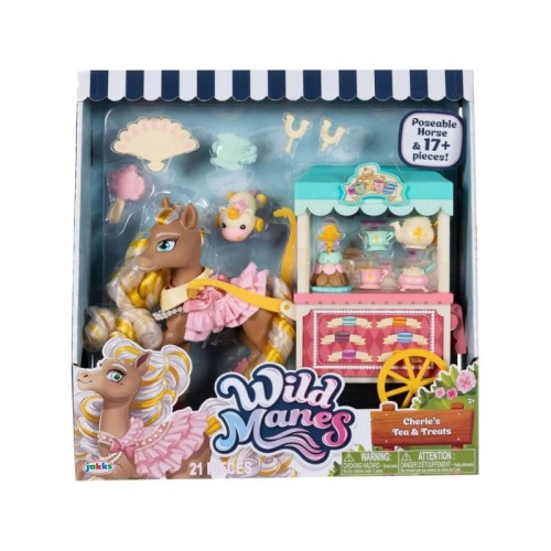 | Karakteristike | Upoznajte Wild Manes, sarene konjice jedinstvenog stila iz animirane serije koja prikazuje svet šarenih konjica, smeštenih u maštovito okruženje zvano Mane Street. Preslatke prijateljice govore o prijateljstvu i avanturama. Šeri ima zglobne prednje udove kako bi pozirala u svojoj visokoj modi. Kolica sa točkovima za čaj i poslastice povezuju se sa Šeri pomocu pojasa i sadrže dodatke za makarone i set za čaj. Komplet sadrzi preko 17 dodataka. Ovi setovi razvijaju dječju kreativnost i maštu. |