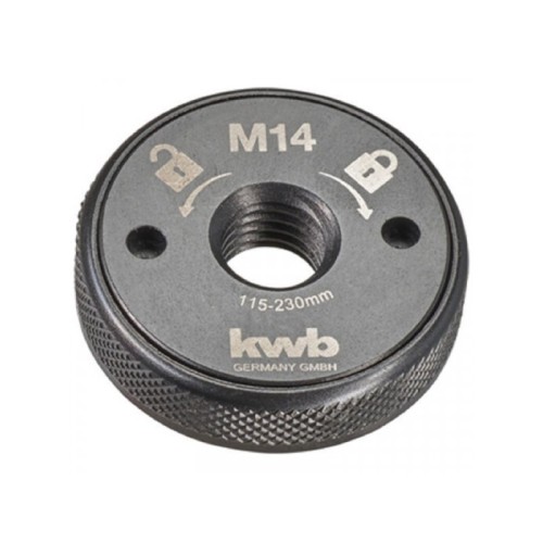 | Ostale karakteristike | Navrtka za brzo otpuštanje sa navojem M14 i debljine 13,4 mm. Za ugaone brusilice sa blokadom pogonskog vratila i prečnika 115 mm - 230 mm. Navrtka za brzo stezanje zamenjuje normalnu steznu maticu i omogućava brzo stezanje i otpuštanje reznih diskova i drugih dodataka za ugaone brusilice. Donja strana je hrapava i poboljšava prianjanje brze matice i alata. |