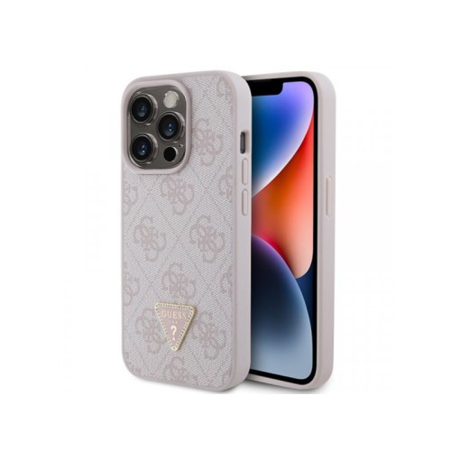 | Ostalo | GUESS maska za iPhone 15 Pro LEATHER 4G TRIANGLE STRASS PINK je silikonska maska za iPhone iz kolekcije modne kuće GUESS sa aplikacijom od ekološke kože. |
