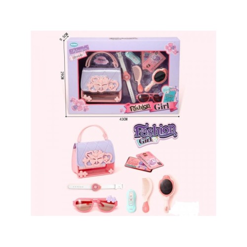 Karakteristike HK Mini igračka set za ulepšavanje Fashion je set koji sadrži preslatku elegantnu torbicu, pored torbe set sadrži i ogledalo, češalj, naočare,sat ...
