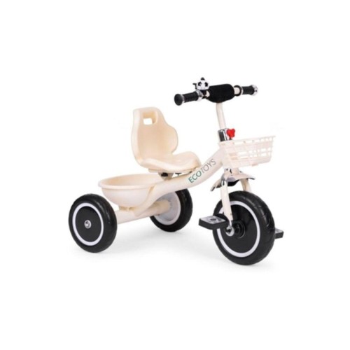 • ECO TOYS Tricikl sa neklizaju†im rukohvatima, zvoncem i korpom, Beige