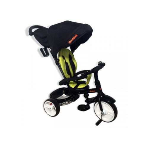 | Karakteristike | Pertini Tricikl crni sa podesivim anatomskim sedištem-sedeći ili poluležeći položaj; ima bezbedonosnu ogradicu i pojaseve; dršku uz pomoć koje roditelji upravljaju triciklom i koja se po potrebi može ukloniti; kao i zaštitnu tendu koja se lako montira/demontira. Ima pedale na kojima dete drži stopala dok ne nauči da vozi. Na triciklu se nalazi i korpa za odlaganje raznih sitnica, kao i držač flašice. Dimenzije: 80x100x50cm |