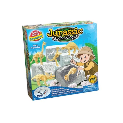 | Karakteristike | Set sadrži: zaštitne naočare, bočicu za prskanje vodom, četkicu za prašinu, čekić, klesarsko dleto, 6 blokova materijala koji sadrže skrivene skelete 6 različitih plastičnih dinosaura, kao i detaljna uputstva za jednostavno i sigurno iskopavanje. Set je savršen za sve male istraživače koji žele da postanu pravi arheolozi! Dimenzije pakovanja: 30 x 6 x 30 cm. |