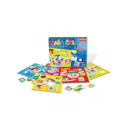| Karakteristike | Izuzetno interesantna igra u kojoj se deca upoznaju sa ljudskim čulima, njihovim stimulansima i osnovnim karakteristikama. Takođe, deca treba da uoče odnos dela i celine kako bi pravilno preklopili sliku na polju i time upotpunili pojam vezan za određeno čulo. Sadrži 5 tabli, 32 karte i 5 puzzli. Igra je pogodna za upoznavanje ljudskih čula i stimulansa. Proizvod je nagrađen nagradom "DOBRA IGRAČKA". |