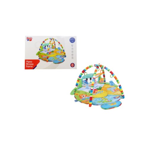 Interaktivna podloga sa klavirom za bebe, postaće omiljeno mesto vašeg deteta. Podloga sadrži klavir koji podstiče dečiju radoznalost i aktivnu igru. Svakim dodirom bebinog stopala, klavir će pokrenuti muzičke numere koje će podstaći radoznalost i oduševiti vašu bebu. Uz postolje i klavir dolazi i mašnica sa razigranim multi-senzornim visećim igračkama – zvečkama u obliku životinja i ogledalima za samootkrivanje. Materijal: tekstil, plastika. Veličina podloge 80x80x52 cm.