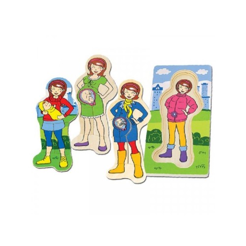 koja sadrži postolje i 4 slagalice koje se ređaju jedna na drugu i slikom hronološki nadovezuje jedna na drugu u prikazu procesa rađanja bebe.