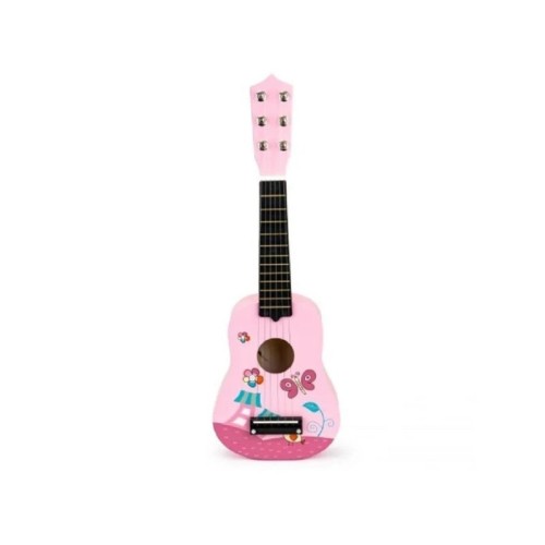 ECO TOYS Drvena gitara za decu sa metalnim žicama pink