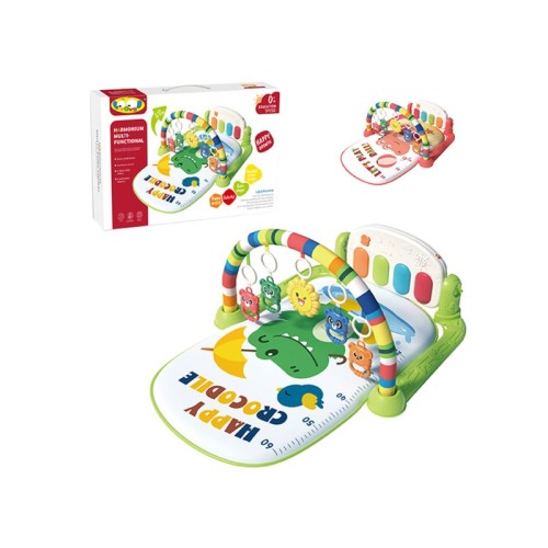 | Karakteristike | Multifunkcionalna muzička teretanica sa motivima krokodila za bebe sa visilicama u različitim bojama sa motivima životinja. Teretanica poseduje i muzičke tastere koje beba pritiska nogicama i na taj način proizvodi prijatne muzičke zvuke. Viseći elementi sadrže figure medvedića, ogledalo i druge elemente koji će okupirati dečju pažnju. Dimenzije: 60 x 38 x 77 cm Težina: 907 g Materijal: vodootporan. Svi materijali su sigurni za decu i dizajnirani da izdrže intenzivnu upotrebu tokom igre. Uzrast: 0+ |