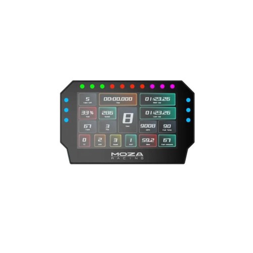| Ostalo | Ekran: 5-inčnikapacitivni touchscreen, rezolucija 1280x720 (720P), osvežavanje 60 Hz Indikatori Shift lights: 10 RGB LED svetala za optimalne tačke menjanja brzine Flag lights: 6 RGB svetala sa paletom od preko 16,7 miliona boja, za signalizaciju događaja kao što su žuta, plava ili crvena zastava Interfejs: potpuno prilagodljiv korisnički interfejs putem aplikacije MOZA Pit House, omogućavajući kreiranje ili preuzimanje dashboard dizajna iz zajednice Hardver Kućište od aluminijumske legure i montaža od čelika, lagano i izdržljivo Visina ekrana može se prilagođavati i kompatibilna je sa svim MOZA direct-drive volan bazama MOZA Racing 1.3 GHz četvorojezgarski procesor omogućava prikaz informacija u realnom vremenu bez vidljive latencije Povezivanje RJ11 priključak za direktnu integraciju sa MOZA volan bazama USB povezivanje na PC čini ga kompatibilnim i sa ostalim sistemima van MOZA ekosistema Podržane igre: kompatibilan uz MOZA Pit House sa popularnim trkačkim naslovima poput Assetto Corsa, Assetto Corsa Competizione, F1, Project Cars 2, DiRT Rally 2 i drugim |