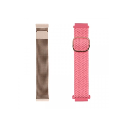 | Karakteristike | Model: JUST IN CASE Boja : Pink&Pink Ostalo Širina narukvice: 20 mm U setu se nalaze 2 narukvice Odgovaraju Samsung, Amazfit, Huawei, Honor i ostalim pametnim satovima. Jedna narukvica ravna, metalna u zlatnoj boji i stil Milanese, a druga narukvica od tekstila u roze boji. |