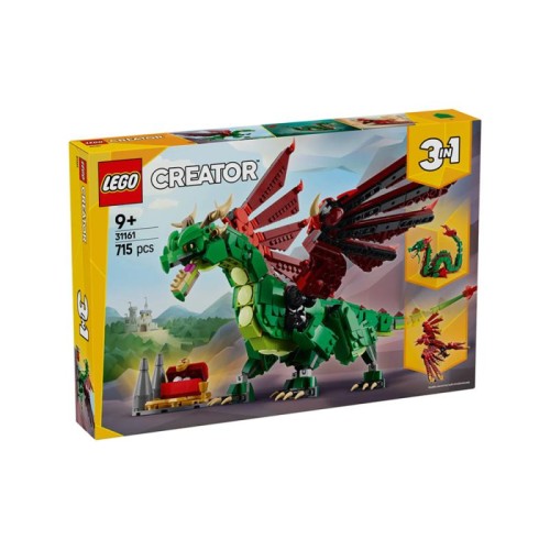 • 3 igračke srednjovekovna stvorenja u 1 kutiji – igračka LEGO® Creator 3u1 Srednjovekovni zmaj omogućava dečacima i devojčicama uzrasta od 9 i više godina da grade i prepravljaju 3 različite igračke životinje iz fantazije pomoću istih kockica