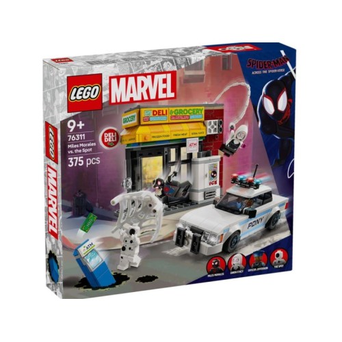 | Karakteristike | Spajder-verzum: Majls Morales protiv Mrlje (76311) je visokokvalitetna igračka koja se gradi za fanove filma Spajdermen: Putovanje kroz Spajder-verzum Marvelovog studija, uzrasta od 9 i više godina. Ovaj avanturistički LEGO® komplet za gradnju i igru idealan je poklon za mlade superheroje, posebno Marvelove fanove i decu koja uživaju u opipljivim avanturističkim igračkama koje se grade. Komplet za igru sa Spajdermenom sadrži 4 mini-figure: Majlsa Moralesa, Mrlje, Gven Stejsi i pozornika Džefersona. Supermarket ima funkciju eksplozije zida koja omogućava da se bankomat skine. Među dodacima su dugačko, fleksibilno uže od mreže i fleksibilna mreža koja je dovoljno velika da zarobi mini-figuru. Policijski automobil se otvara da omogući da se 2 mini-figure stave unutra. Za dodatnu digitalnu zabavu graditelji mogu da uveličaju, rotiraju modele u 3D i prate napredak pomoću zabavne, intuitivne aplikacije LEGO Builder. • Komplet Spajder-verzuma koji se gradi – Spajder-verzum: Majls Morales protiv Mrlje je dečja igračka za gradnju i igru, za dečake i devojčice uzrasta od 9 i više godina, zasnovana na filmu Marvelovog studija Spajdermen: Putovanje kroz Spajder-verzum • LEGO® Spajdermen mini-figure – Komplet za igru sa Spajdermenom koji se gradi sadrži mini-figure Majlsa Moralesa, Mrlje, Gven Stejsi i pozornika Džefersona, kao i dodatke za bacanje mreže • Superherojski komplet za gradnju i igru – funkcija eksplozije zida supermarketa omogućava da Mrlja ukrade bankomat i inspiriše beskrajne maštovite avanture • Policijski automobil koji se gradi – policijsko vozilo pozornika Džefersona se otvara kako bi se omogućilo da se 2 mini-figure postave unutra • Poklon za decu na temu Spajdermena – fanovi superheroja, vozila i filma Spajdermen: Putovanje kroz Spajder-verzum Marvelovog studija mogu da uživaju u beskrajnoj maštovitoj igri uz ovaj zabavni LEGO® Marvel komplet koji se gradi • 3D uputstvo za gradnju – deca mogu da preuzmu aplikaciju LEGO® Builder za sveobuhvatno graditeljsko iskustvo sa digitalnim alatima za uveličavanje i rotiranje modela u 3D, čuvanje kompleta i praćenje napretka • Igračke koje se grade za mlade superheroje – širok asortiman LEGO® Marvel kompleta za gradnju pruža deci stalno promenljiv univerzum superherojskih avantura gradnje i igre • Komplet za igru koji se gradi od 375 delova – supermarket je visok 11 cm (4,5 in.), dugačak 15 cm (6 in.) i širok 9 cm (3,5 in.) |