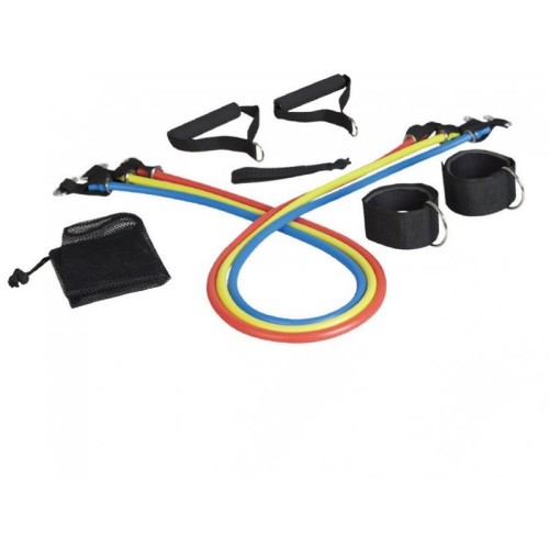 Set LiveUp Ekpander idealan je rekvizit za takve vežbe usmerene na jačanje gornjih i donjih delova tela. Komplet sadrži tri gume različite krutosti (dužine 115 cm, a prečnici guma su 9 mm, 11 mm, 12 mm), plastične ručke od pene, narukvice i kopču za vrata. Materijal: Guma.