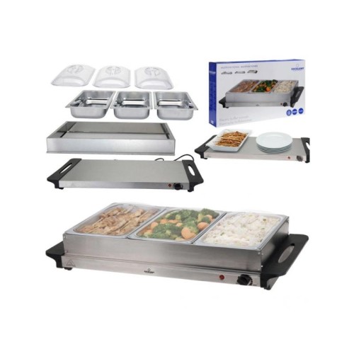 | Karakteristike | Dimenzije posuda: 32,5 x 17,5 cm Kapacitet posuda: 2 l Visina posuda: 6 cm Dimenzije grejne ploče: 53 x 36 cm Težina: 4,30 kg Podešavanje temperature: 45°C do 85°C Dodatne funkcije: Termoizolovane ručke, prekidač za uključivanje/isključivanje, lampica za grejanje, neklizajuća baza |