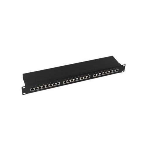 | Karakteristike | Broj portova: 24 Kapacitet: 1U Veličina: 19 inča Standard: Cat6A Boja: Crna |