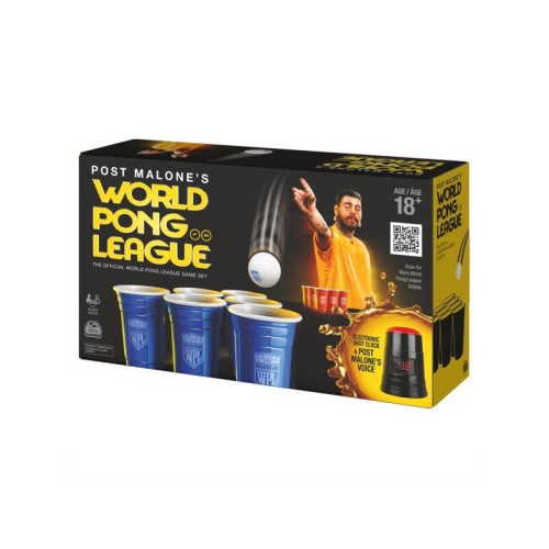 | Karakteristike | Igrajte pong kao šampion uz Post Malone’s World Pong League! Ova zabavna verzija klasične igre donosi 20-sekundni elektronski šot klok sa duhovitim komentarima Post Malona. Set sadrži sve što vam je potrebno – 22 čaše (11 crvenih i 11 plavih), 6 loptice i zvaničan priručnik pravila. Lako se postavlja i igra, bilo kod kuće, na zabavama ili na otvorenom. |