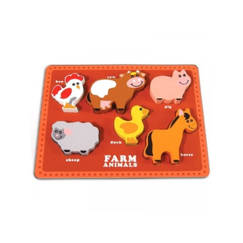 3D drvena umetaljka sastoji se od drvene ploče sa mestima za umetanje 6 drvenih 3D figura debljine 2cm, koje su sastavni deo seta.
