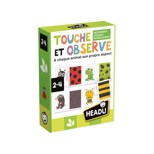 | Karakteristike | Set sadrži 18 dvostranih delova slagalice, odnosno 2x9 parova životinja i slika teksture njihove kože. Kada se slagalica sklopi i okrene dobija se slika livade koja prikazuje stanište tih životinja. Dimenzije: 18,8 x 20,5 cm. |