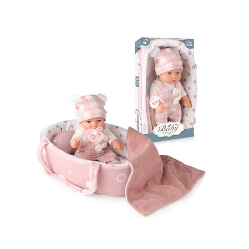| Karakteristike | Beba ima i svoje ćebence 30cmx30cm i jastuk u obliku polumeseca. Ruke,noge i glavu lutke, dete može pomerati ,staviti je u ležeći ili sedeći položaj. Predvidjeno za uzrast 3+ Dimenzije pakovanja:18,5x34x10cm |
