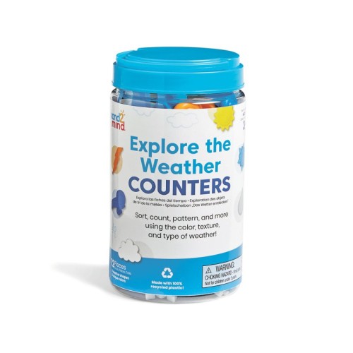 | Karakteristike | Set uključuje teglicu i 72elementa (6 elemenata u 6 različitih boja). Inspirišite decu da vežbaju rane matematičke i naučne veštine dok uče o poznatim i nepoznatim vremenskim obrascima. Vodič za aktivnosti uključuje podatke o vremenu i rane matematičke aktivnosti. Brojite i sortirajte po boji, obliku, atributu i još mnogo toga. |