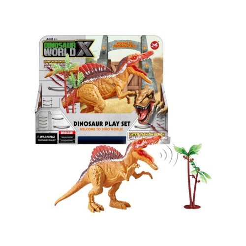 | Specifikacija | Realističan Spinosaurus sa očima i jezikom koji svetle, uz zvučne efekte. Povuci kandže i gledaj kako se vilica pokreće, dok svetlosni efekti čine igru još uzbudljivijom. Set uključuje dinosaurusa sa svetlećim očima i jezikom, pokretnom vilicom i kandžama, uz zvučne efekte, dodatak rep dinosaurus, kao i drvo palme. Dimenzije pakovanja: 26,2x9x21,2cm. Baterije su uključene u setu. Baterije: 3XAG13 |