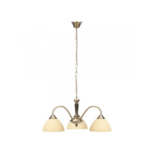 | Karakteristike | Materijal: Metal/Staklo Karakteristike: IP zaštita: IP20 Broj grla: 3 Vrsta grla: E14 Specifikacije osvetljenja: E14 3 x MAX 40 W Primenjena voltaža: 230 V, 50 Hz Boja: Bež Dimenzije: Udaljenost od stropa: 90 cm Širina: 52 cm Masa: 2.15 kg Pakovanje: Dimenzije pakovanja: 42 x 32 x 26 cm Bruto masa: 3.7 kg |
