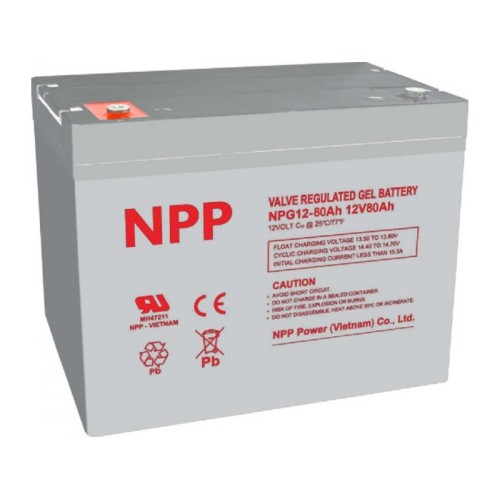 • NPP NPG12V-80Ah, Gel battery, C20=80AH, T16, 330x171x214x220, 22,6KG, Light grey