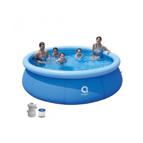 | Karakteristike | Samostojeći bazen okruglog obilka. Dimenzije 240cm x 63cm. Zapremnina 2074 L. Uz bazen dolazi filter s pumpom. Gornji rub se naduva-veća stabilnost i postojanost kružnog oblika. Kapacitet pumpe (300Gal/H 1136L/H) |