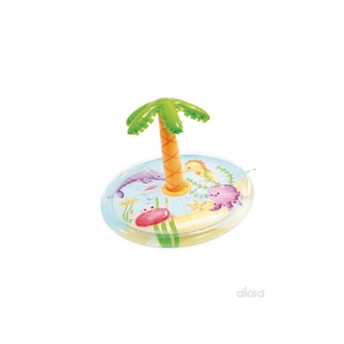 Jednostavno priključite baštensko crevo na bazen i palmina prskalica će početi da raspršuje blage mlazove vode, stvarajući dodatno uzbuđenje i osveženje. Unutrašnji deo bazena krase razigrani morski motivi sa slatkim morskim stvorenjima koji podstiču maštovitu igru. Ovaj bazen je idealan za prve vodene avanture i igru u toplim danima.