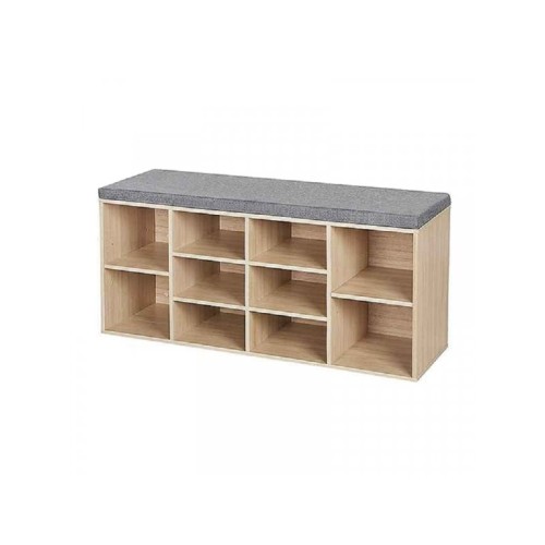 | Specifikacija | Dimenzije: 101x48x29,5cm sa jastukom za sedenje Nudi prostor za 10 pari ciplela Multifunkcionalna upotreba Boja: drvo Materijal: Iverica Nosivost: do 150 kg |