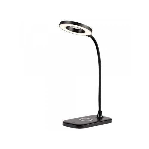 | Specifikacija | Materijal: Plastika Boja: Crna Tip sijaličnog grla: Integrisani LED Tip sijalice: LED Snaga sijalice: 5 W Ostale karakteristike: Lampa se može puniti USB kablom Lampa podržava bežično punjenje mobilnih telefona Svetlosni tok izvora svetlosti: 210 lm IP zaštita: IP20 Masa: 0.26 kg Dimenzije: Visina: 290 mm |
