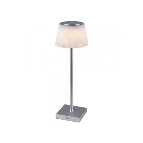 | Specifikacija | Materijal: Metal/Plastika Boja: Bela Tip sijaličnog grla: Integrisani LED Tip sijalice: LED Snaga sijalice: 4 W Ostale karakteristike: Prekidač na dodir Lampa se može puniti USB kablom Svetlosni tok izvora svetlosti: 200lm IP zaštita: IP44 Masa: 0.559 kg Dimenzije: Visina: 380 mm |
