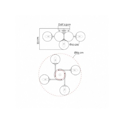| Karakteristike | Nazivni Napon 220-240V AC / 50/60Hz Tip Grla E 14 Broj Grla 5 Izvor Svetlosti sijalica tip E14 (5 grla) Materijal Aluminijum / staklo Dimenzije Ø650; h-330 mm Abažur Kugla (5 x Ø15 cm) Način / Tip Montaže nadgradna, na plafon Stepen Električne Zaštite Klasa II IP Zaštita IP 20 |
