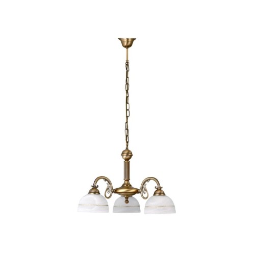 | Karakteristike | Tip: Luster Stil lampe: Klasična Preporučena prostorija za korišćenje: Dnevna soba, trpezarija, spavaća soba IP zaštita: IP20 Boja lampe: Bronzana Materijal lampe: Metal Boja abažura: Bela Materijal abažura: Staklo Broj grla: 3 Vrsta grla: E27 Specifikacije osvetljenja: E27 3x max 40W Primenjena voltaža: 230V, 50Hz Rastojanje od plafona: 900 mm Prečnik: 540 mm Klasa zaštite: I |