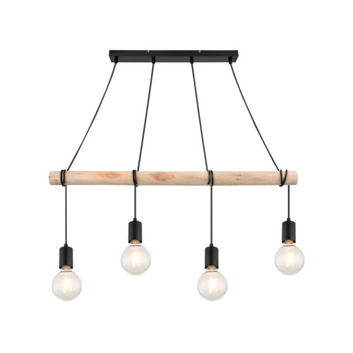 | Karakteristike | Tip: Visilica Stil lampe: Industrijska Preporučena prostorija za korišćenje: Dnevna soba, kuhinja, trepezarija, spavaća soba IP zaštita: IP20 Materijal lampe: Metal; Drvo Boja lampe: Mat crna Broj grla: 4 Vrsta grla: E27 Specifikacije osvetljenja: E27 4x max 40W Primenjena voltaža: 230V, 50Hz Širina: 850 mm Dimenzije ugradnje: 500 mm Klasa zaštite: I |