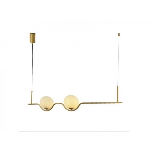 Moderno dizajnirana visilica sa dva sijalična grla tipa G9 u mesing zlatnoj boji. Savršeno će se uklopiti u dnevnoj sobi ili trpezariji. Proizvod se prodaje bez izvora svetla.