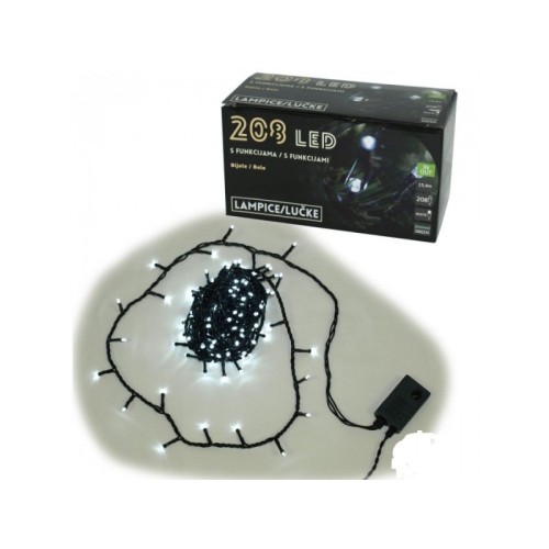 Karakteristike 208 LED lampica na razmaku od 5 cm, na zelenoj žici.