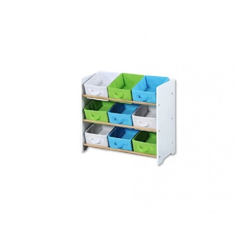 | Specifikacija | Materijal: ploča od vlakana i borovo drvo. Dimenzije: Dužina 65 cm, širina 30 cm, visina 60 cm. Isporuka: rastavljeno - laka konstrukcija. Lako se održava. Ima 9 polica tekstilnih polica za odlaganje. Može se korisiti za igračke, knjige i sve što je potrebno deci. Korpe su opremljene praktičnom tekstilnom ručkom što znatno olakšava korišćenje. Korpe su dostupne u 3 boje. Olakšava organizaciju u dečijoj sobi. |