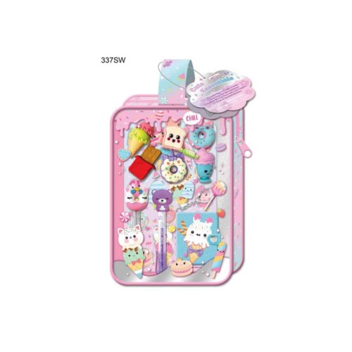 | Opis | Školski set koji dolazi zapakovan u providnom neseseru. Sadržaj: 6 gumica za brisanje, notes sa priveskom, 2 mirišljave gel olovke, mirišljavi stikeri. Set je dizajniran sa bezbednim i ekološkim materijalima, idealan za decu, a lik medvedića dodatno motiviše mališane da se posvete stvaranju i učenju. Pomoću ovog seta, mali umetnici mogu da se izražavaju kroz crteže, vežbanje slova i brojeva, sve uz puno zabave! Uzrast:5+ |